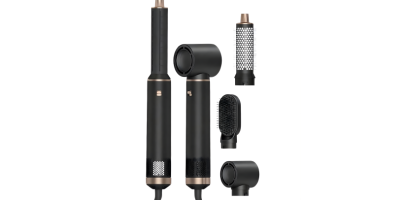Este cepillo 5 en 1 es versátil. Se compone de un secador de pelo, un primer cepillo redondo, una segunda plancha alisadora/rizadora y dos rizadores que soplan en diferentes direcciones. Las puntas son fáciles de poner y quitar, y puedes agarrarlas por los extremos sin quemarte los dedos.